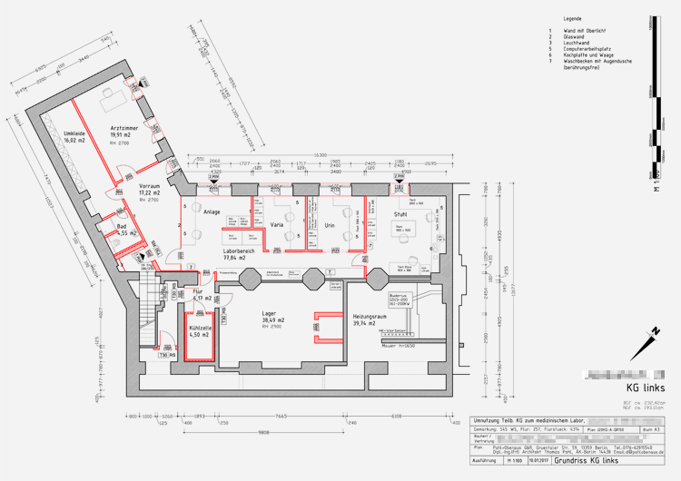 Umbau und Umnutzung eines Kellergeschosses zu einem medizinischen Labor.Berlin Weißensee.FERTIGGESTELLT 2017