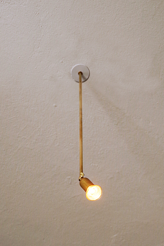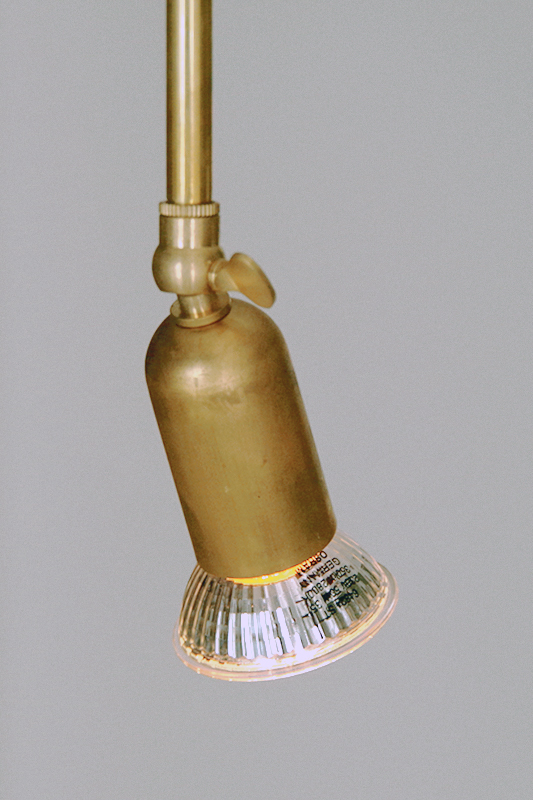 Messing / Höhe ca. 1070 mm, 360° schwenkbar / GU10 Fassung mit Halogenleuchtmittel.