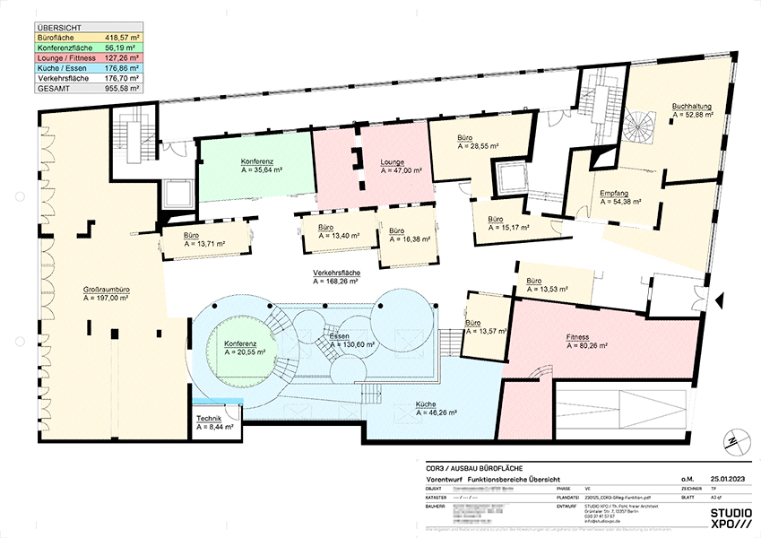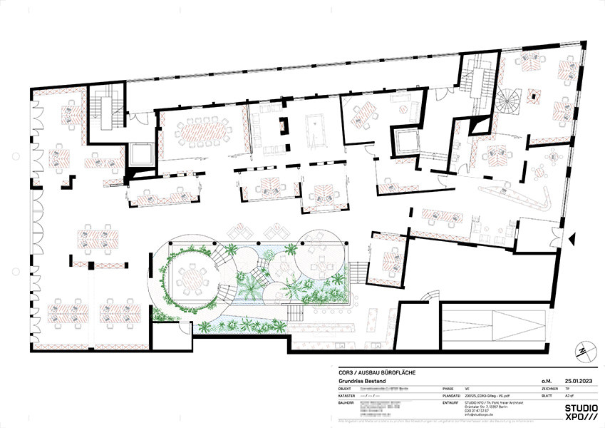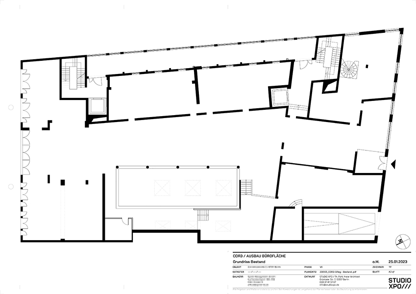 Alles in allem muss die Fläche für die geplante Nutzung als Büro für ungünstig angesehen werden. Erstes Entwurfsziel ist also: Die Not zur Tugend machen.