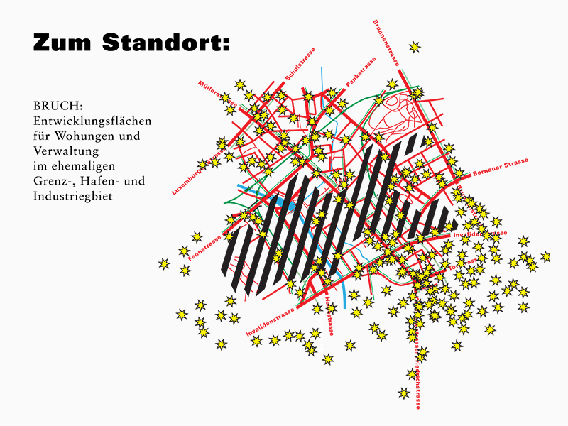 Diplomarbeit über Architektur Stadt und Gesellschaft – auf einem alten Fabrikgelände in der Chausseestrasse. Berlin Mitte.
