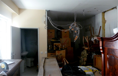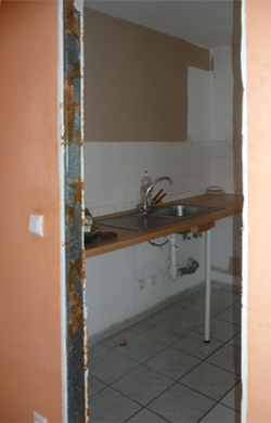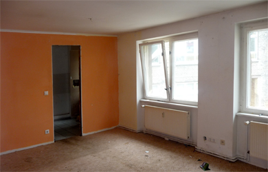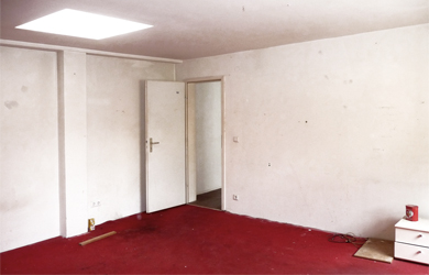 Die seit Jahren leerstehende und ursprünglich als Pferdestall, dann als Gewerbeobjekt genutzte Remise sollte zu einer Wohnung umgebaut werden. Das Objekt befindet sich im zweiten Hinterhof eines ehemaligen Manufakturgeländes.Um die ungünstige Ausrichtung des Gebäudes nach Norden, bedingt durch die angrenzenden Grundstücke im Osten und Süden, zu kompensieren, werden größere Flächen im Dach und in der Westfassade verglast. Der Wohnraum öffnet sich vom Erdgeschoss bis zum Dach. Die Kinderzimmer erhalten eine Zugang zum Innenhof, der zukünftig ein Garten werden soll.