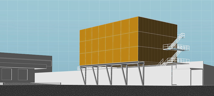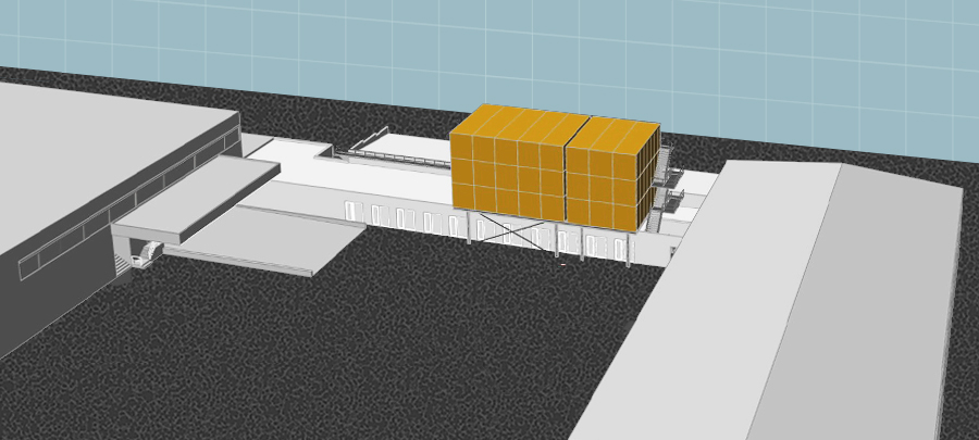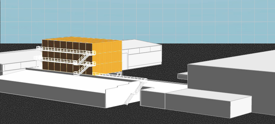 Die Lösung bringt die Herstellung eines neuen Baugrundes â ĂŒber dem GebĂ€ude aufgestellt â dies erreicht, durch eine filigrane Stahlkonstruktion. Sie benötigt nur wenige punktuelle Eingriffe in den Bestand, was den laufenden Betrieb nur un- wesentlich stört. Dazu lĂ€sst sich die Struktur passgenau zur Aufnahme von fertigen Container- modulen vorkonfigurieren.