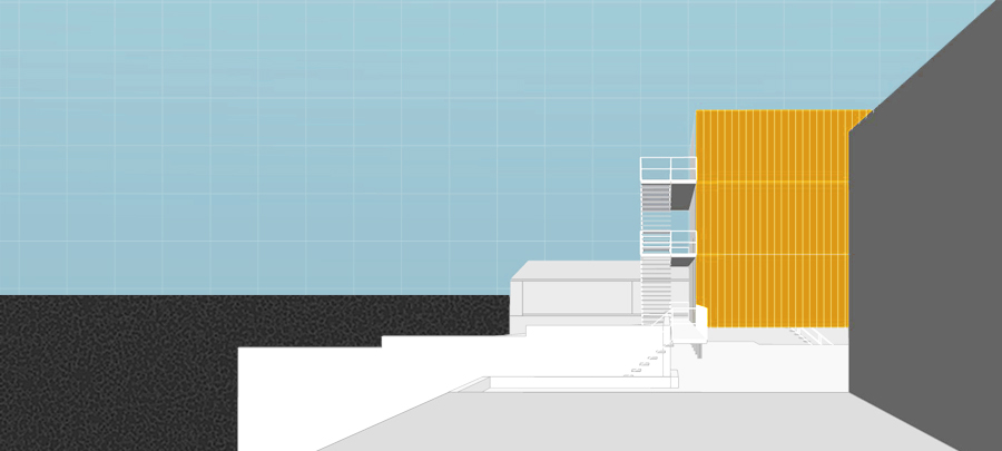 Und fast von selbst, transfromieren Untergestell und Container- modul, das alte Bauprinzip der Stahlskelett-Gewerbehallen, in ein neues und mar- kantes HauptgebÀude.