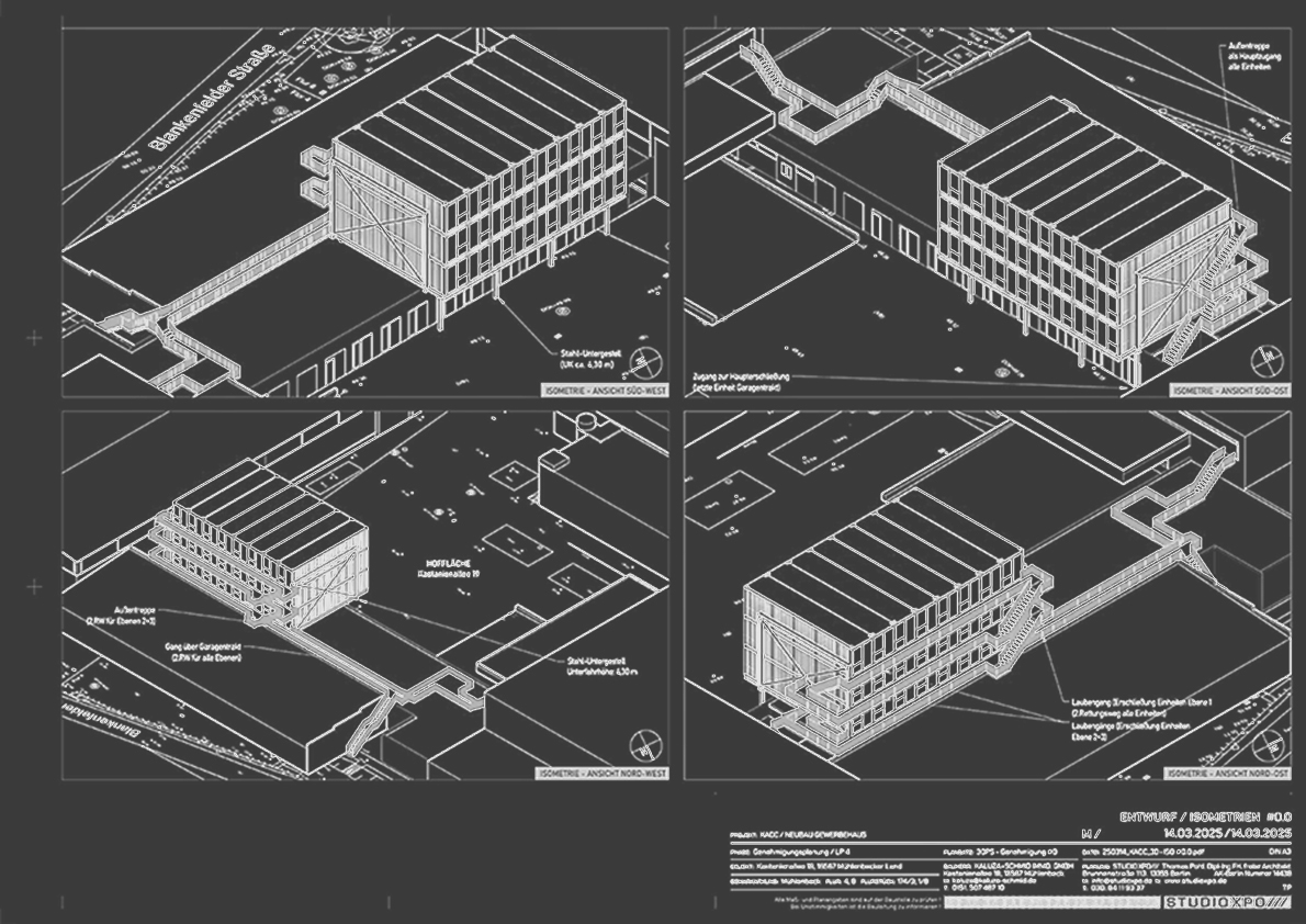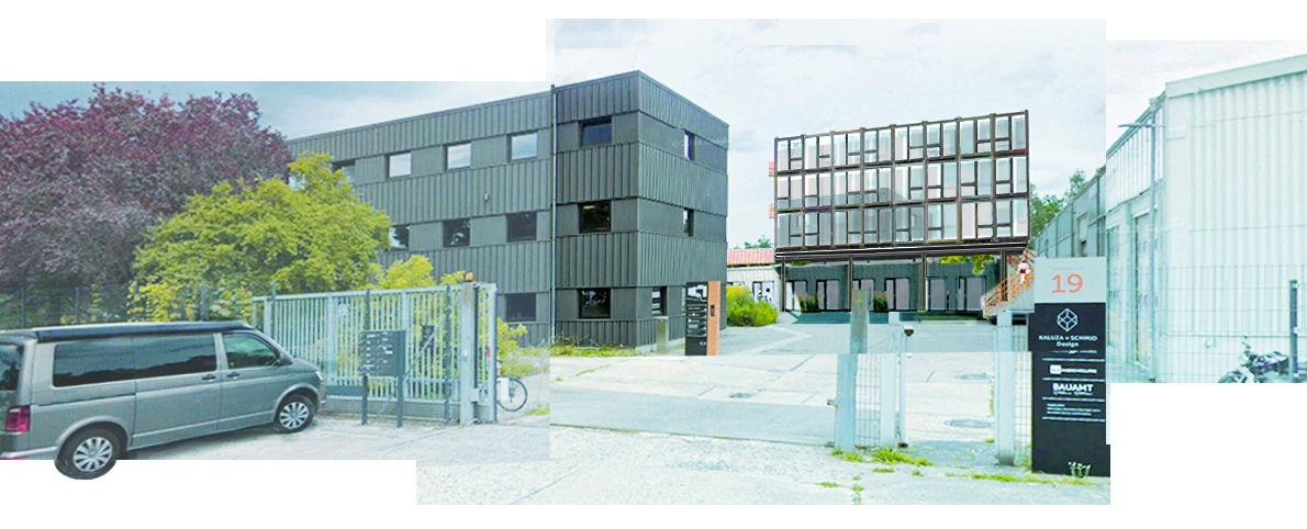 8Ă3 neue BĂŒros ĂŒber alten Garagen – in Modulbauweise.